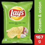 Lays American Style Cream & Onion Chips – A perfect mix of creamy, tangy, and spicy flavors in every crispy bite!